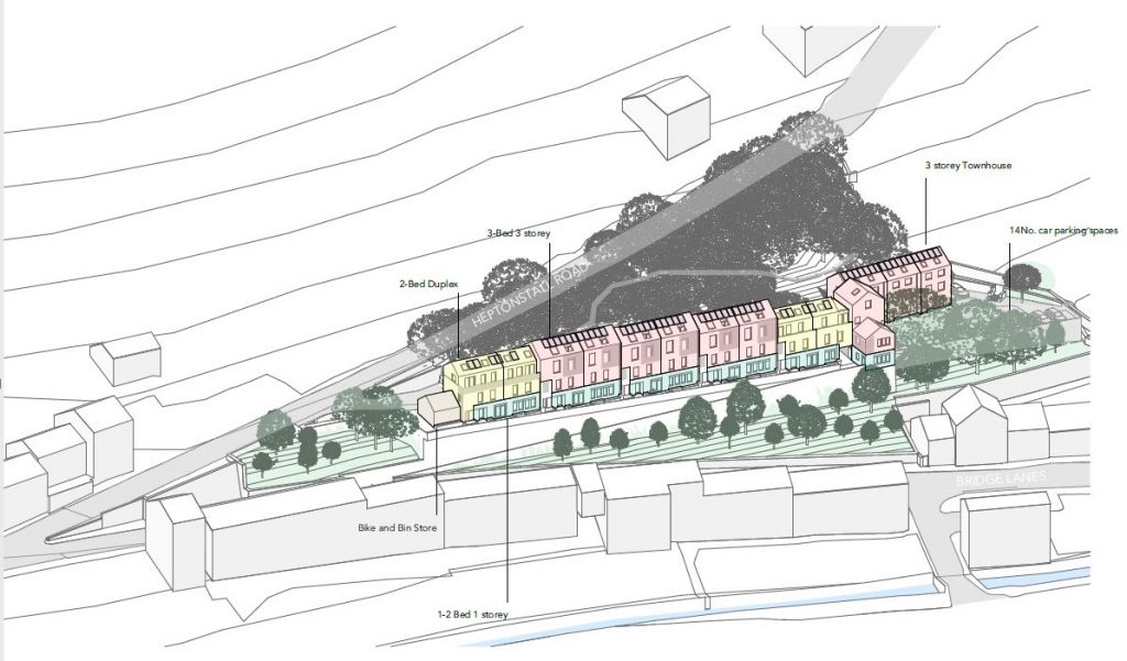 After more than two years of planning, surveys, architects drawings and financial planning we applied for planning permission for our new development of twenty homes at affordable rents in what was formally known as High Street, Hebden Bridge in July 2018. We had, we believed, a proposal based on sustainable architecture for Hebden Bridge people priced out of the property market.