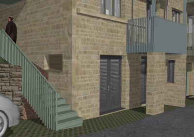 Materials – We have increased use of stone to the front elevation and added visible window lintels and cills for a more interesting and traditional look. The colours of the balconies and external stairs have been softened.