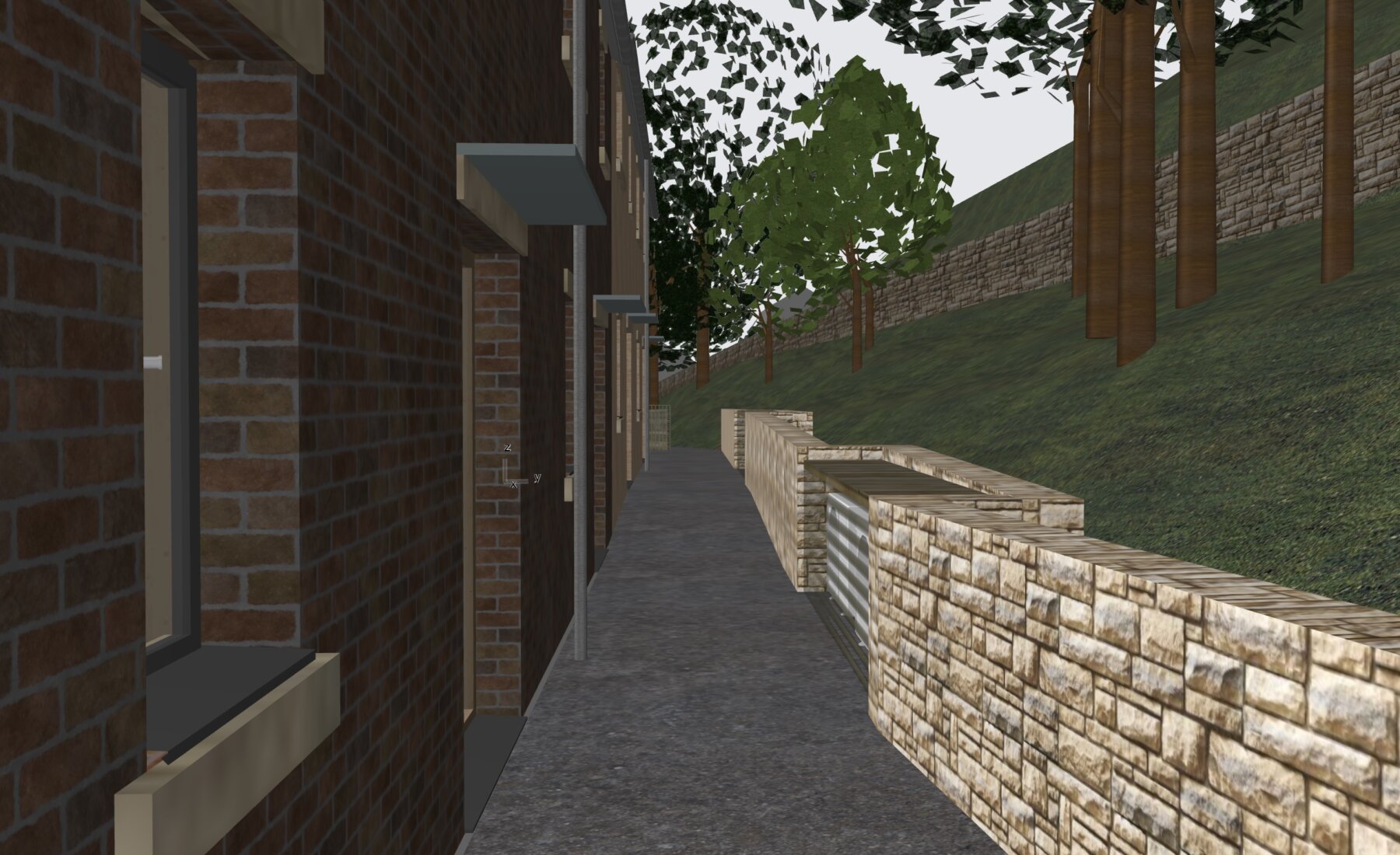 We are proposing moving the terrace to the North (high) side of the lane, whereas the previous scheme was to the south.