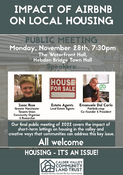 The final meeting in our autumn 2022 series is a constructive meeting to hear about the impact of Airbnb on the local housing market and more importantly how you can influence keeping affordable homes available for the local community.