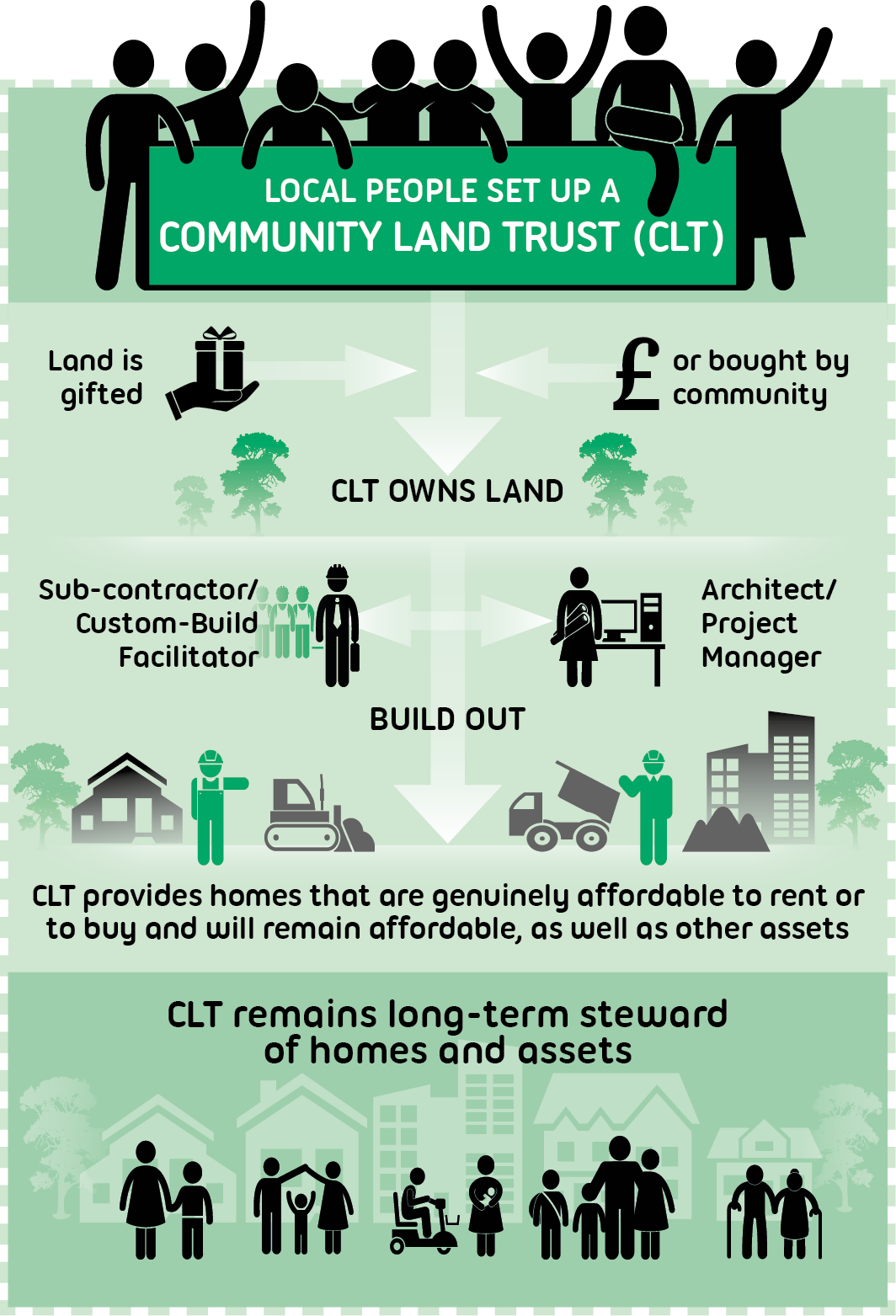 But what is a CLT? The National CLT Network has produced this simple diagram and a great video explaining what CLTs do and why they are needed today.